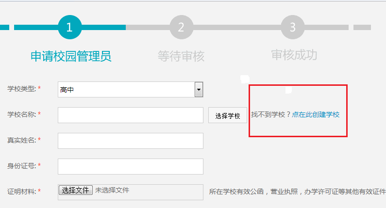 可以自主创建学校,按照提示信息如实填写资料提交即可,我们会在一个工作日内以消息的形式发送结果给您,请您注意及时查看